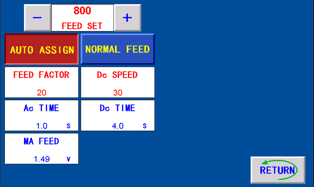 THE SPEED OF THE BACK DISCHARGE: the speed of the motor is slow. MANUAL DISCHARGE: the speed of manual discharge under the stop state. THE DISCHARGE MATERIAL IS FIXED: the addition and reduction of the discharge motor after control is fast and slow, and the setting value is smaller and faster. ACCELERATION SPEED: the amount of change when the control is accelerated. SLOW DOWN SPEED: the amount of time reduced by the control of the pressure. ACCELERATION TIME: the acceleration time of the initial change in the control. DECELERATION TIME: the deceleration time of the delay in the control. MANUAL ASSIGNMENT/AUTOMATIC ASSIGNMENT: Manual assignment: the back discharge speed is set when the speed is set and will not change automatically. Automatic assignment: when running, the back feed speed will automatically adjust to appropriate speed value. ORDINARY DISCHARGE/DECELERATING DISCHARGE: Normal discharge: when the discharge switch signal is detected, the pressure reduction is delayed, and the loading signal is not detected when the discharge signal is not detected.