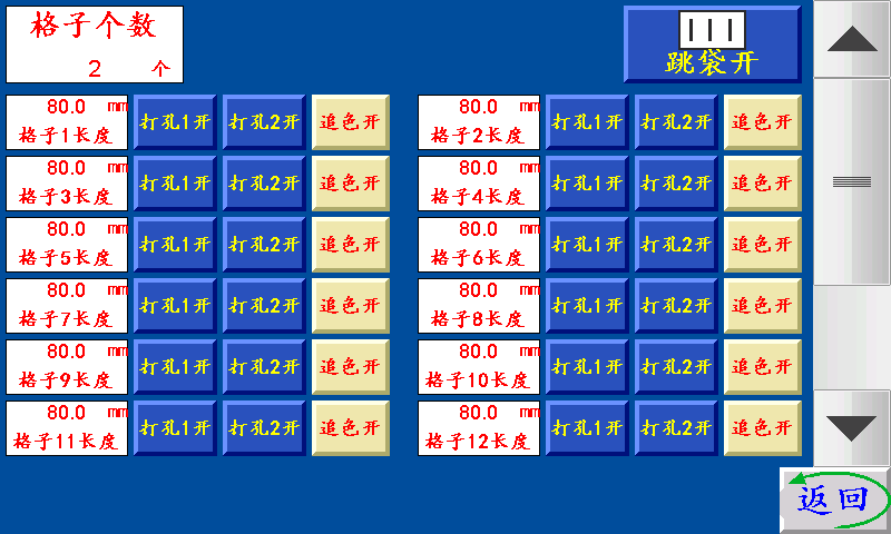 跳袋功能:进入跳袋参数界面,修改格子袋中格子间的参数。