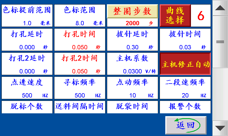 脱标个数:设定N个,制作彩色制品时,跟踪N次色标点,跟踪不住自动停机。